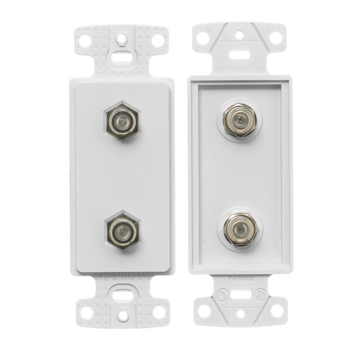 HUBBELL WIRING DEVICE-KELLEMS NS782W Decorator Plate, 1-Gang Frame, With Two F-Connector, White