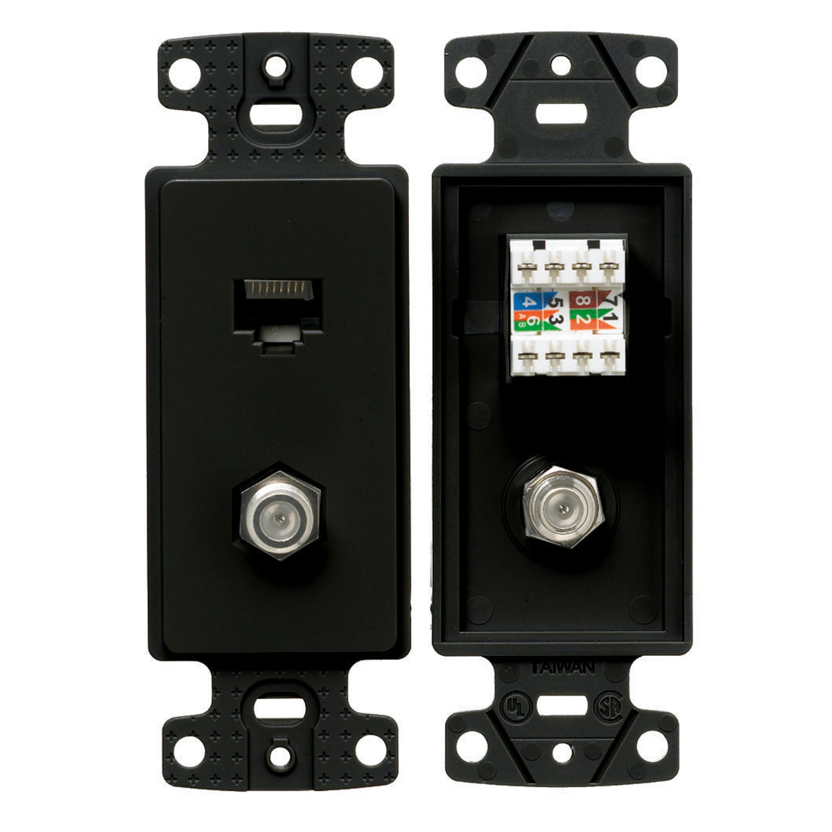 HUBBELL WIRING DEVICE-KELLEMS NS785BK Plate Frame, F Coax And Cat5E Jack, Black