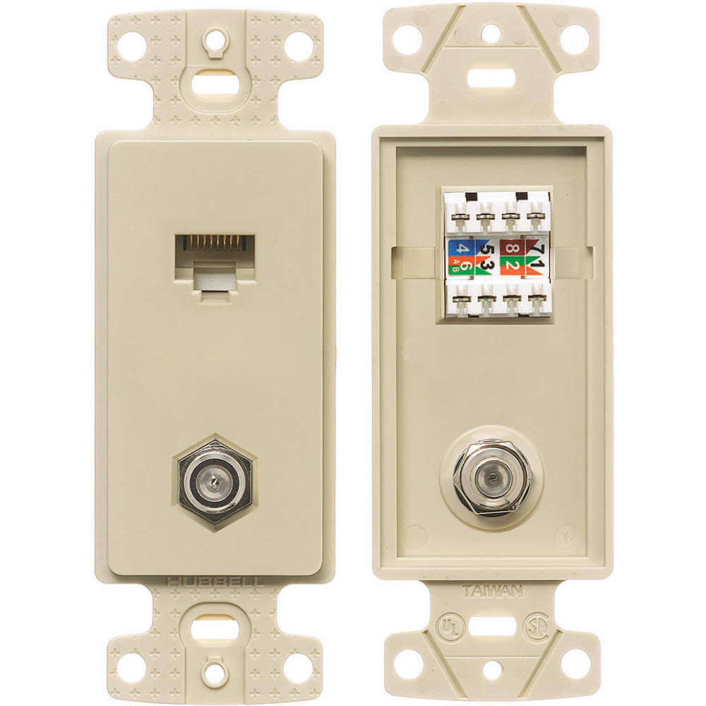HUBBELL WIRING DEVICE-KELLEMS NS785I Wall Plate And Jack Cat 5e/f-type Ivory