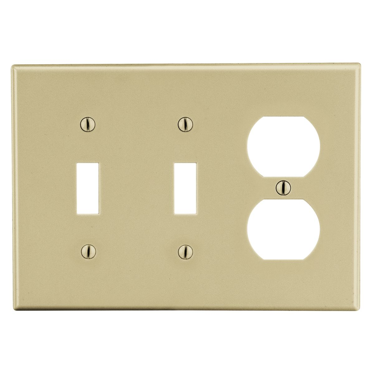 HUBBELL WIRING DEVICE-KELLEMS P28I Duplex Receptacle Wall Plate, 3 Gangs, Ivory, Plastic