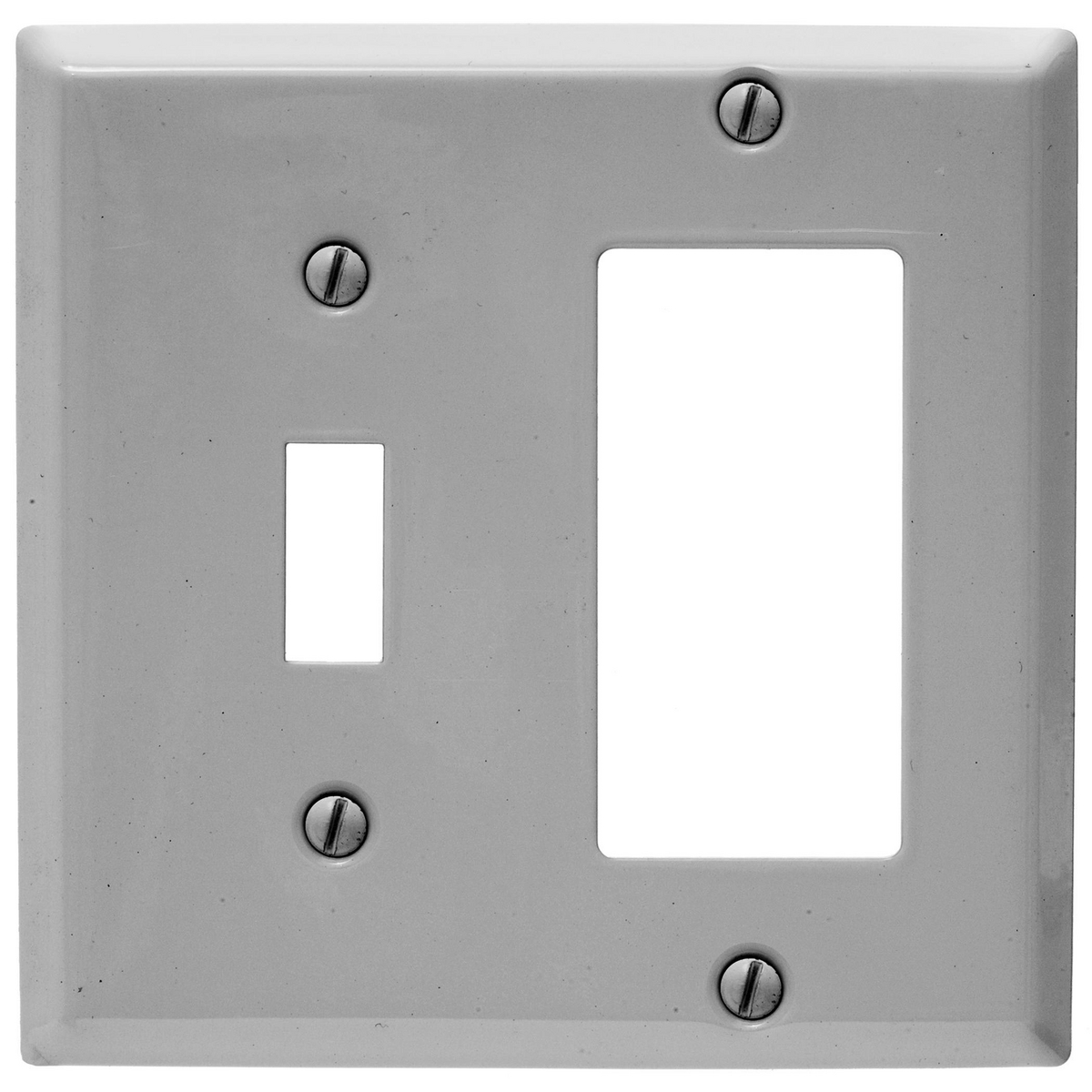 HUBBELL WIRING DEVICE-KELLEMS PJS126G Metal Raceway, Device Plates, 2-Gang, 1 Duplex, 1 Toggle, Gray Painted Steel