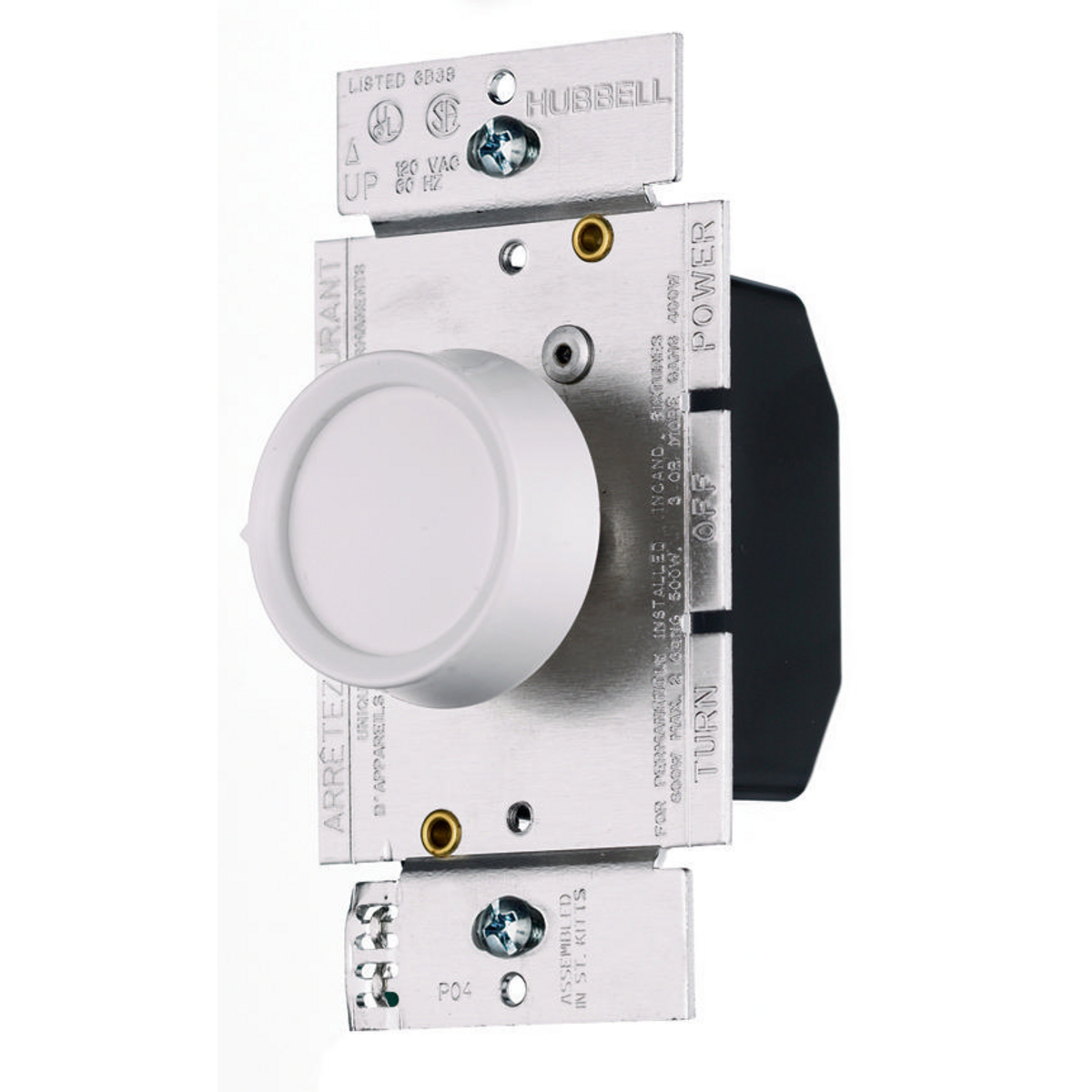 HUBBELL WIRING DEVICE-KELLEMS RD600PDK Dimmer Switch, Rotary, Single Pole, 600W, 120VAC