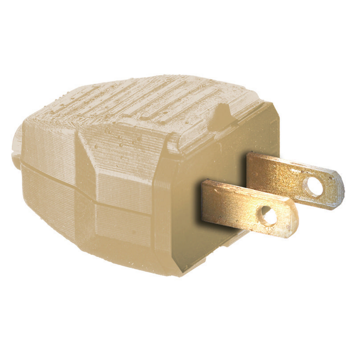 HUBBELL WIRING DEVICE-KELLEMS RP123I Male Plug, With Zip Cord, 15 A, 2 Pole, Ivory