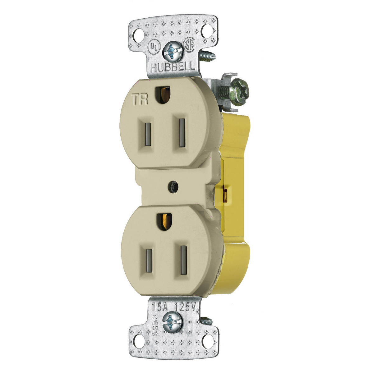 HUBBELL WIRING DEVICE-KELLEMS RR15EITR TradeSelect, Straight Blade, Duplex Receptacle, Tamper Resistant, Push Terminals, 15A 125V, 2-Pole 3-Wire Grounding, 5-15R, Ivory