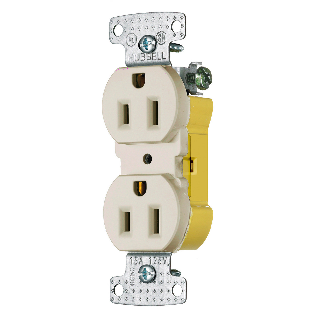 HUBBELL WIRING DEVICE-KELLEMS RR15ELA Duplex Receptacle, 15A, 125V, Light Almond