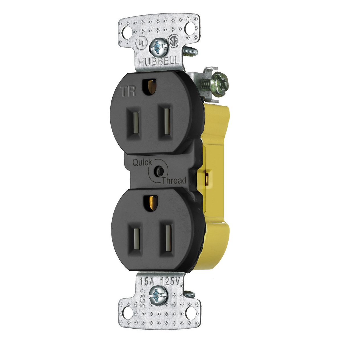 HUBBELL WIRING DEVICE-KELLEMS RR15EQBKTR TradeSelect, Straight Blade, Duplex Receptacle, Tamper Resistant, Quick Wire Push Terminals, 15A 125V, 2- Pole 3-Wire Grounding, 5-15R, Black
