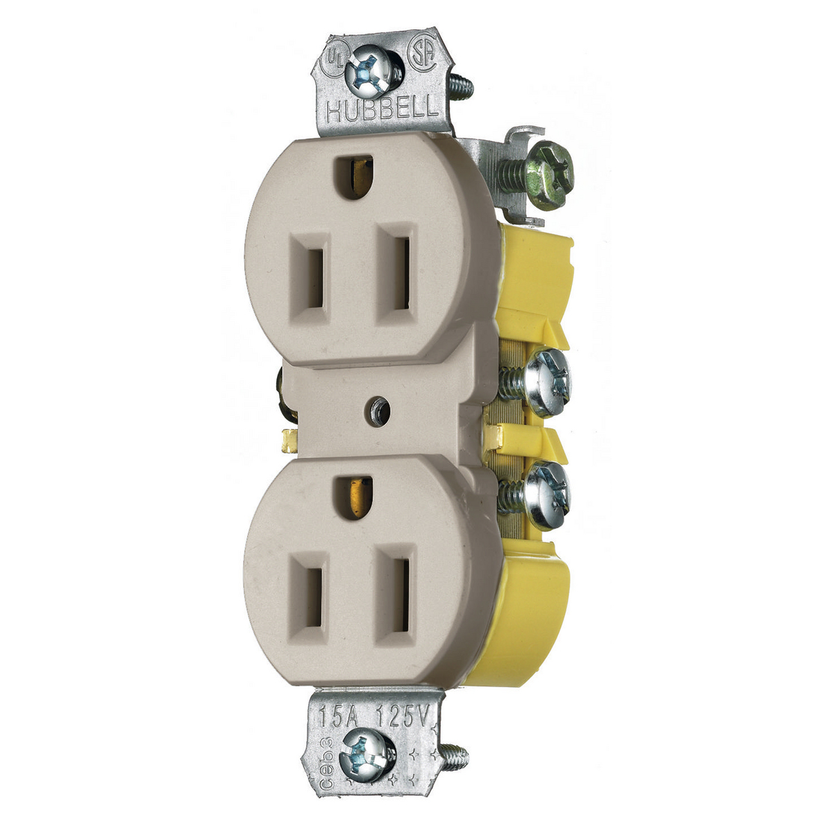 HUBBELL WIRING DEVICE-KELLEMS RR15KAL Receptacle, Duplex, 15A, 125V, 2-Pole, 3-Wire Grounding, Push Terminals, Almond