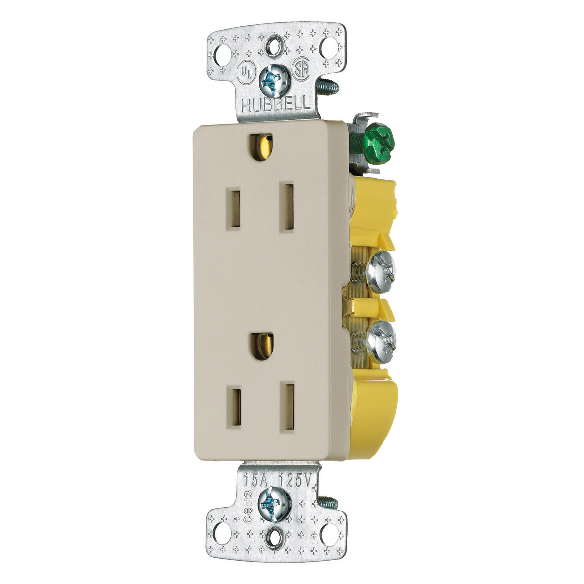 HUBBELL WIRING DEVICE-KELLEMS RRD15AL Receptacle, Decorator Duplex, 15A, 125V, 2-Pole, 3-Wire Grounding, Almond