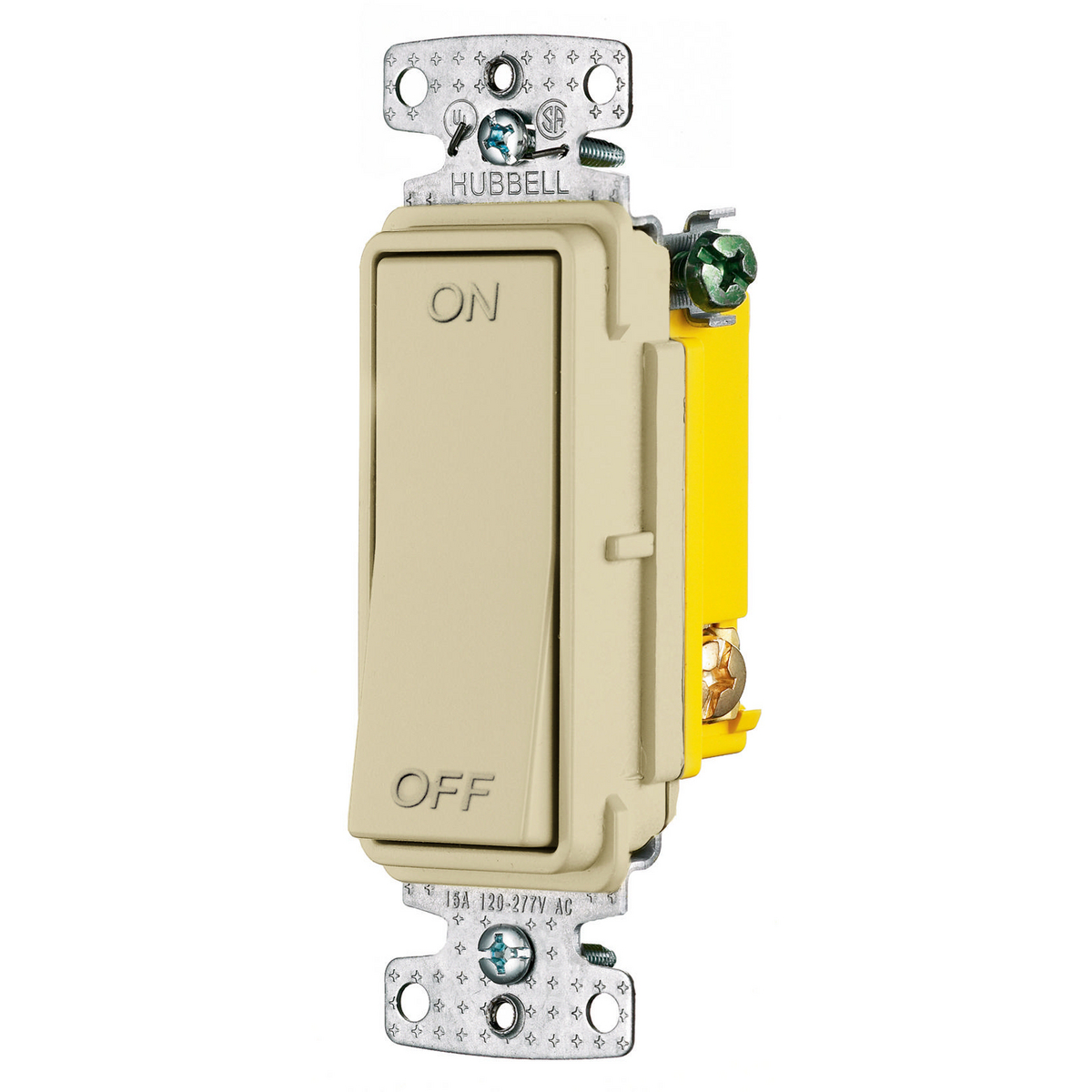 HUBBELL WIRING DEVICE-KELLEMS RSD115IM Rocker Switch, On/Off, Single Pole, 15A, 120/277VAC, Ivory