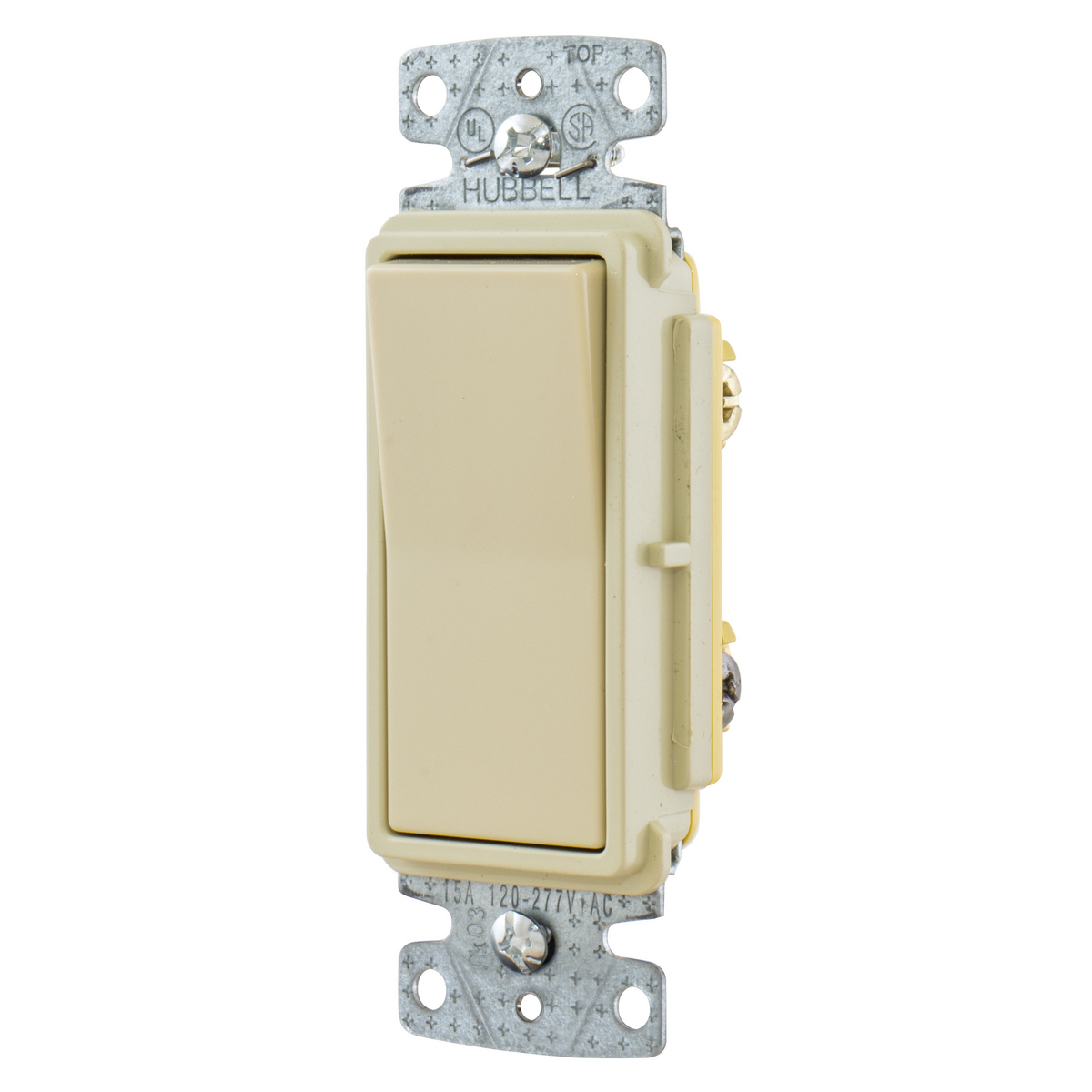 HUBBELL WIRING DEVICE-KELLEMS RSD315I Rocker Switch, Three Way, 15A, 120/277VAC, Push Bac Kand Side Wired, Ivory