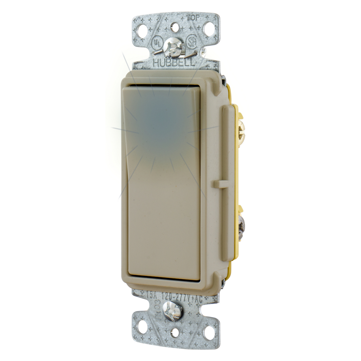 HUBBELL WIRING DEVICE-KELLEMS RSD315ILAL Rocker Switch, Three Way, 15A, 120/277VAC, Push Almond