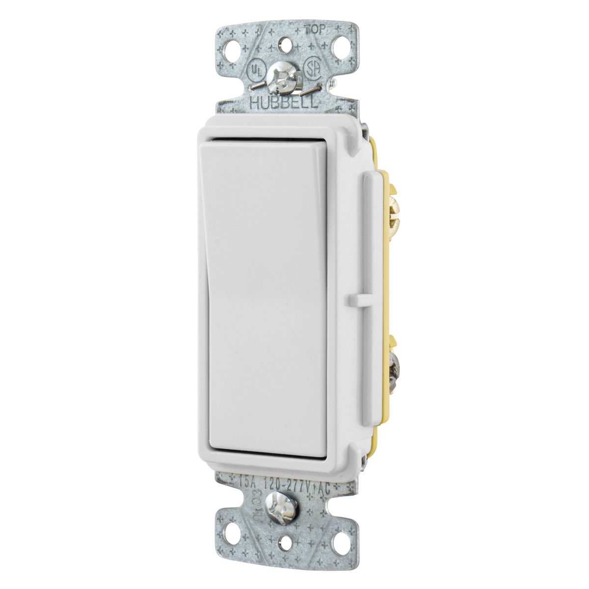 HUBBELL WIRING DEVICE-KELLEMS RSD315W Rocker Switch, Three Way, 15A, 120/277VAC, Push Back And Side Wired, White