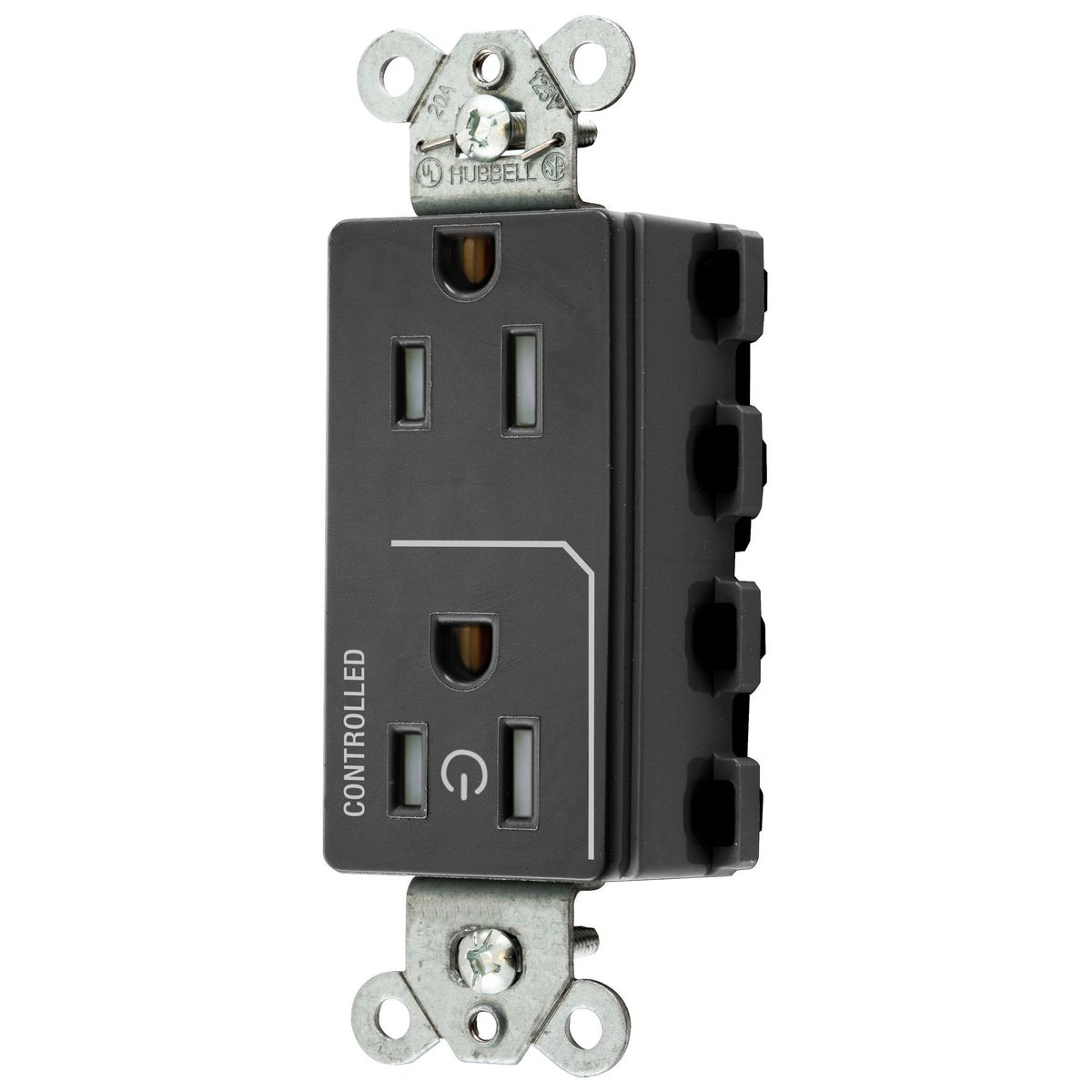HUBBELL WIRING DEVICE-KELLEMS SNAP2152C1BKTRA Style Line Receptacle, 15A 125V, 2-P 3-W Grounding, Nylon, Black
