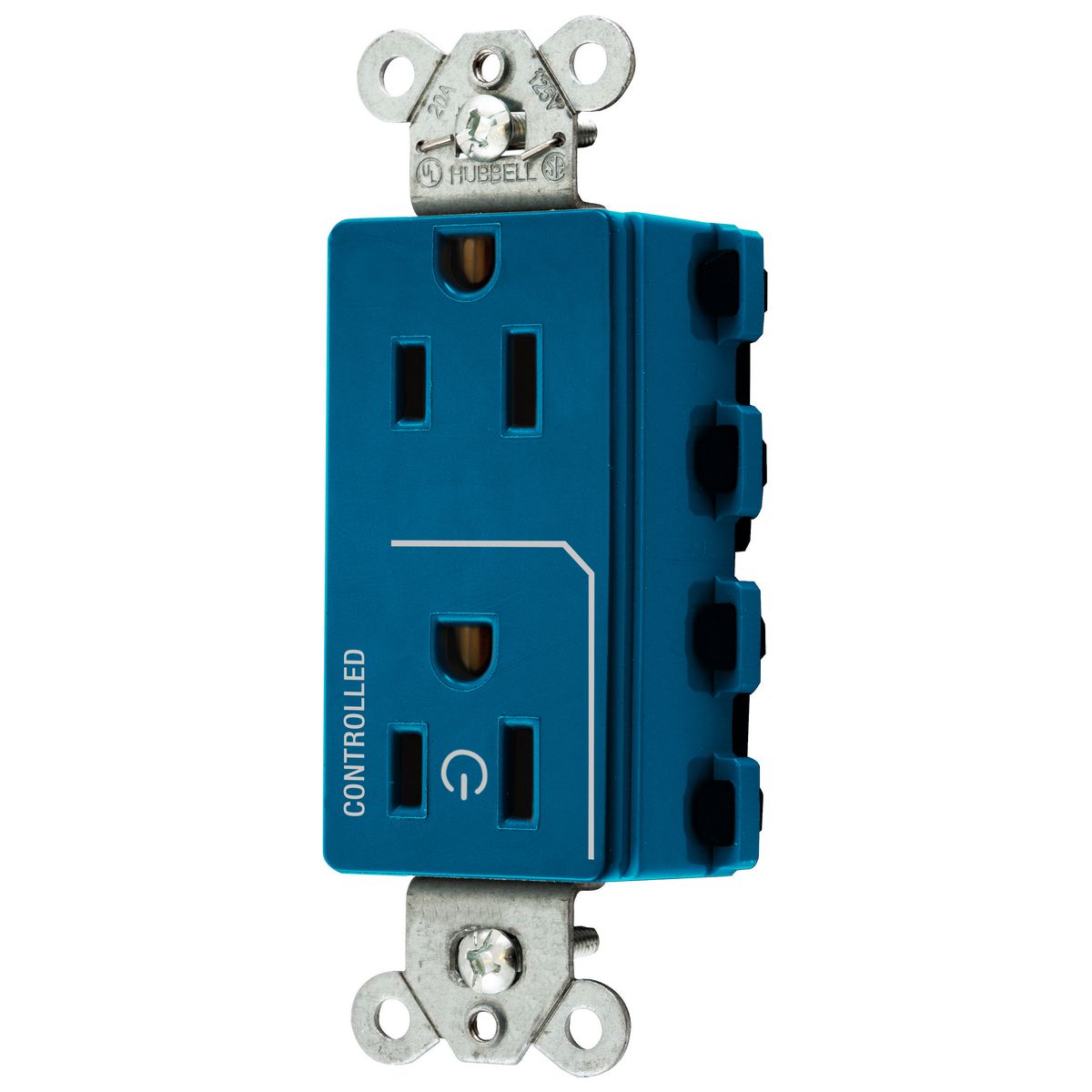 HUBBELL WIRING DEVICE-KELLEMS SNAP2152C1BL Style Line Receptacle, 15A 125V, 2-P 3-W Grounding, Nylon, Blue