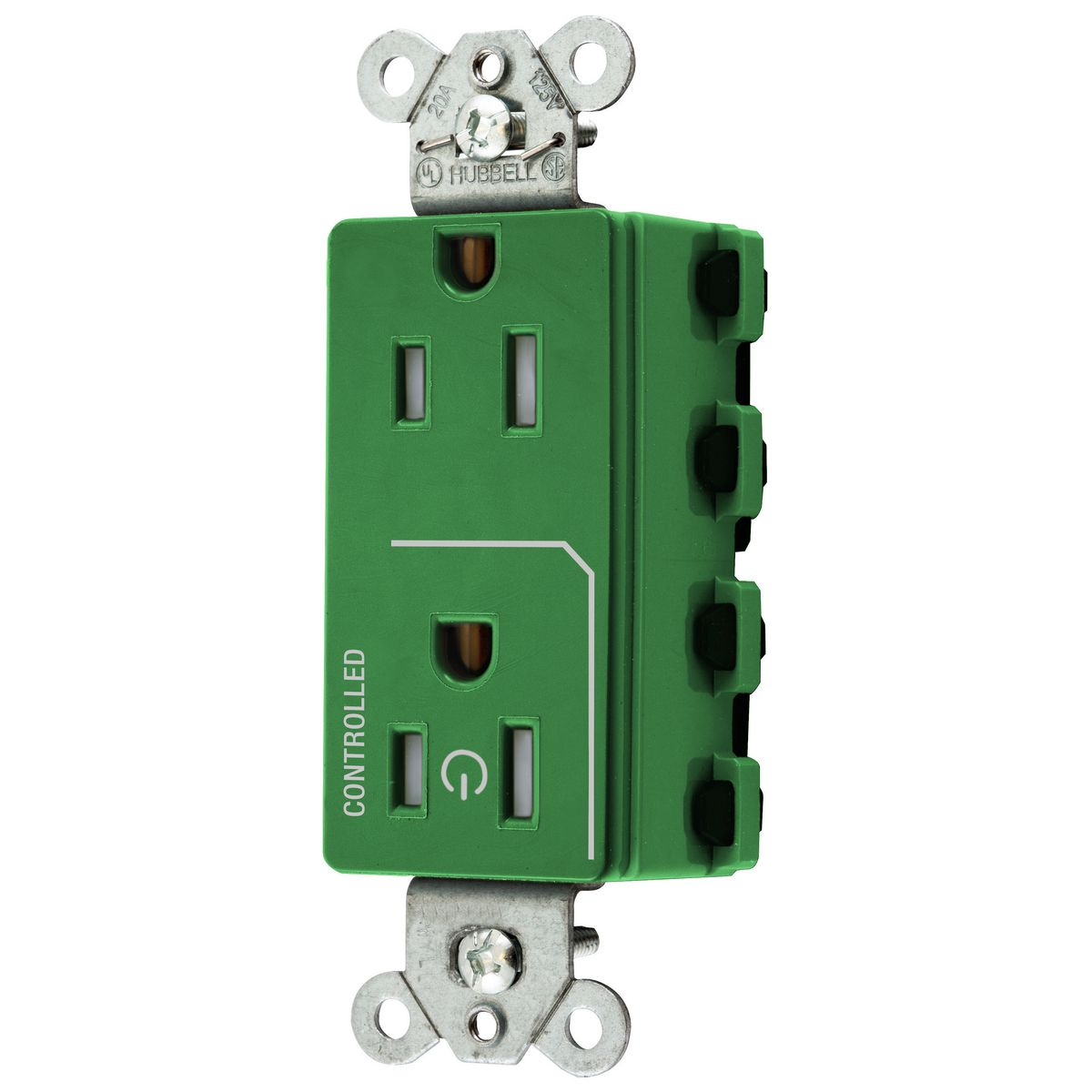 HUBBELL WIRING DEVICE-KELLEMS SNAP2152C1GNTRA Style Line Receptacle, 15A 125V, 2-P 3-W Grounding, Nylon, Green