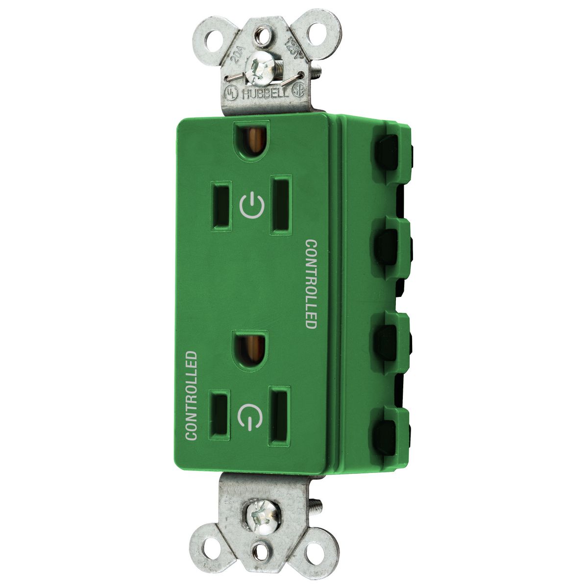HUBBELL WIRING DEVICE-KELLEMS SNAP2152C2GN Style Line Receptacle, 15A 125V, 2-P 3-W Grounding, Nylon, Green