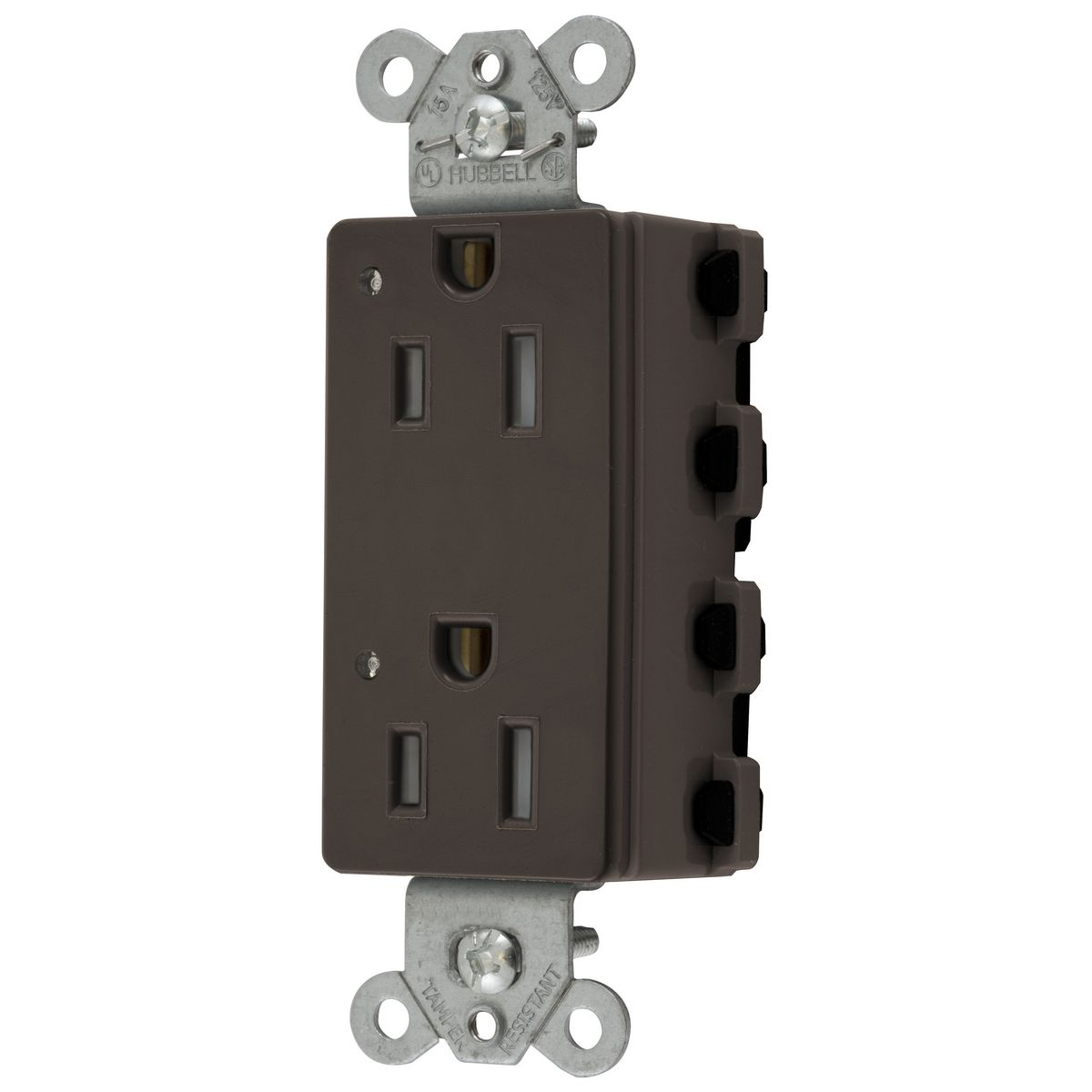 HUBBELL WIRING DEVICE-KELLEMS SNAP2152LTRA Style Line Receptacle, 15A 125V, 2-P 3-W Grounding, Nylon, 5-15R, Brown
