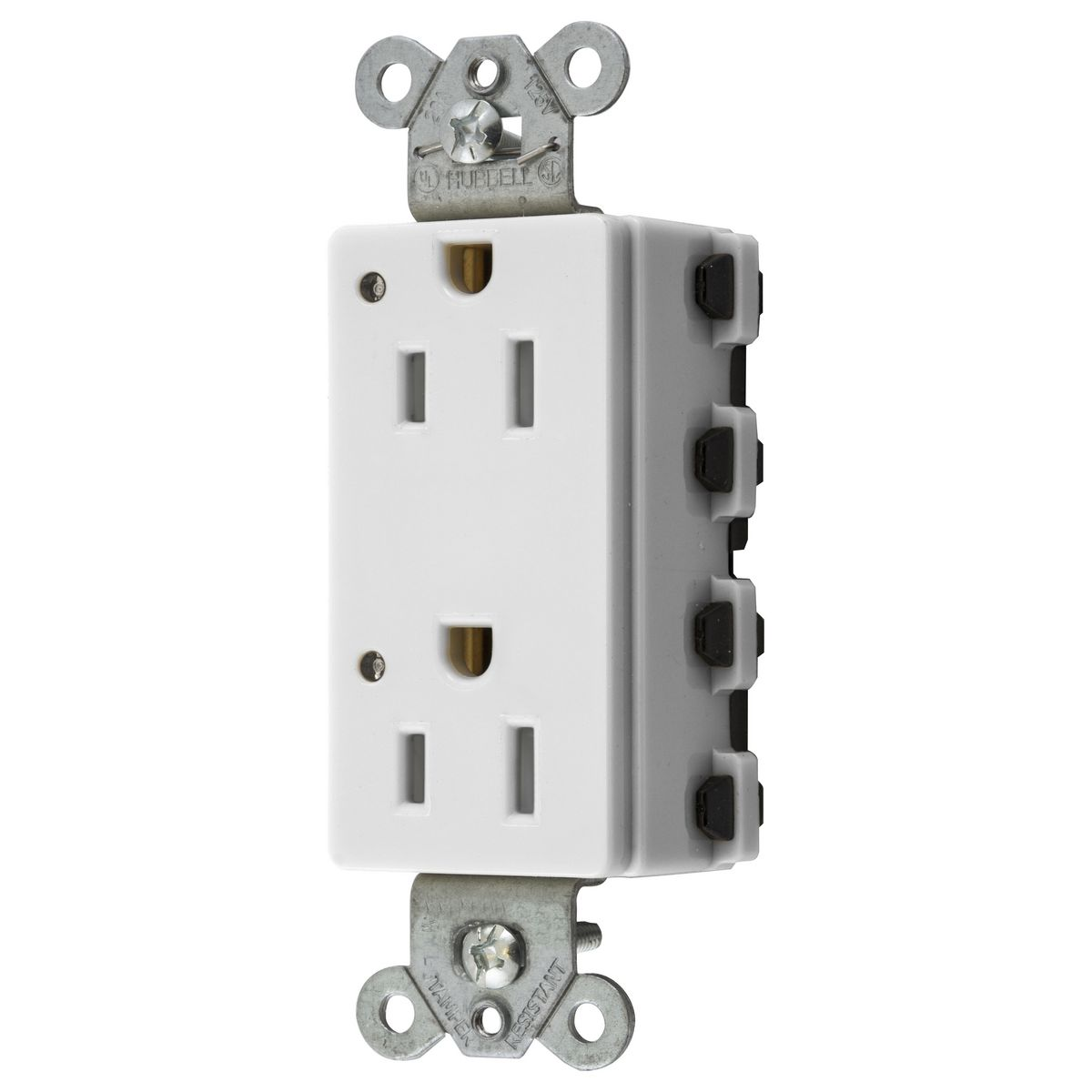 HUBBELL WIRING DEVICE-KELLEMS SNAP2152WLTRA Style Line Receptacle, 15A 125V, 2-P 3-W Grounding, Nylon, 5-15R, White