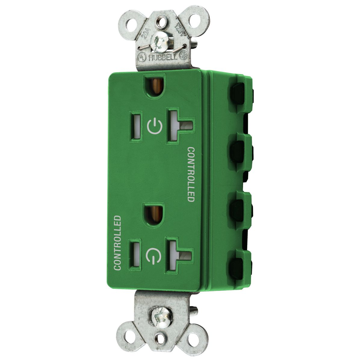 HUBBELL WIRING DEVICE-KELLEMS SNAP2162C2GNTRA Style Line Receptacle, 20A 125V, 2-P 3-W Grounding, Nylon, Green