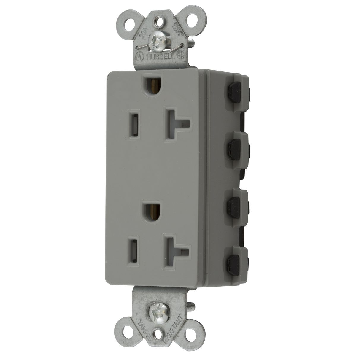 HUBBELL WIRING DEVICE-KELLEMS SNAP2162GYTRA Style Line Receptacle, 20A 125V, 2-P 3-W Grounding, 5-20R, Nylon, Gray