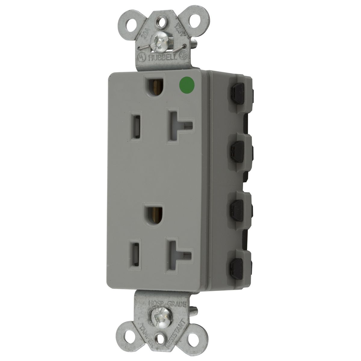 HUBBELL WIRING DEVICE-KELLEMS SNAP2182GYTRA Style Line Receptacle, 20A 125V, 2-P 3-W Grounding, 5-20R, Nylon, Gray
