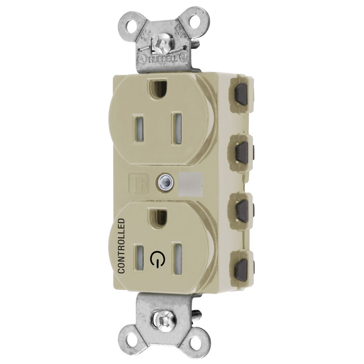 HUBBELL WIRING DEVICE-KELLEMS SNAP5262C1ITRA Straight Receptacle, Controlled, 15A 125V, 2-Pole 3-Wire Grounding, Nylon, Ivory