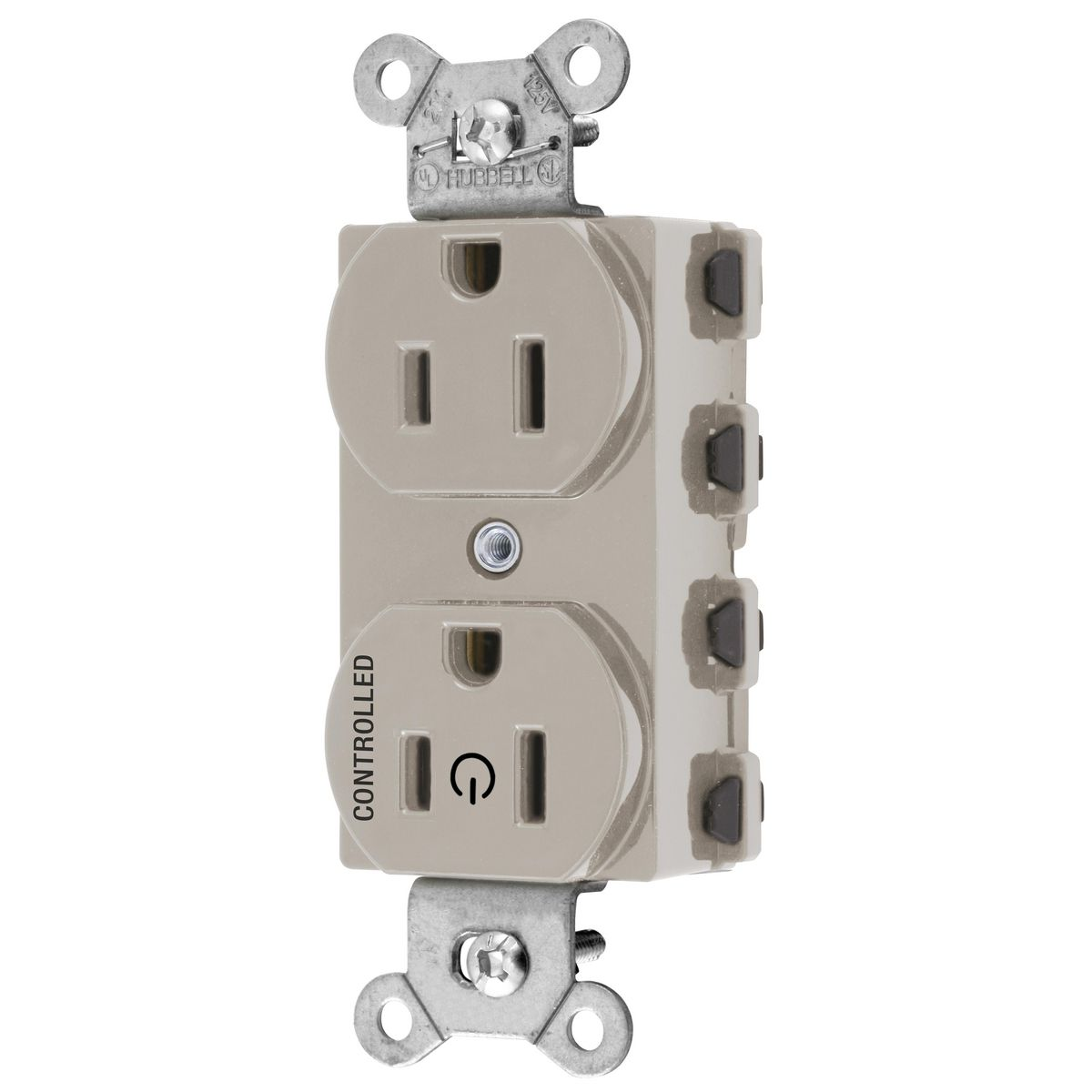 HUBBELL WIRING DEVICE-KELLEMS SNAP5262C1LA Straight Receptacle, 15A 125V, 2P - 3W Grounding, Nylon, Light Almond