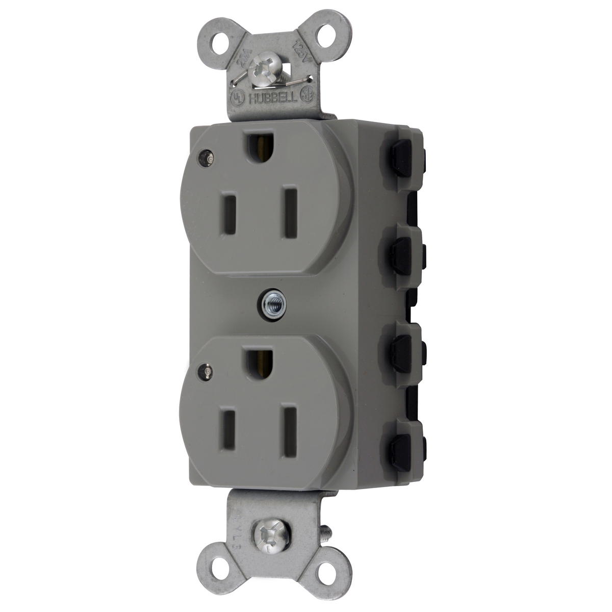 HUBBELL WIRING DEVICE-KELLEMS SNAP5262GYL Straight Receptacle, 15A 125V, 2P - 3W Grounding, 5-15R, Nylon, Gray