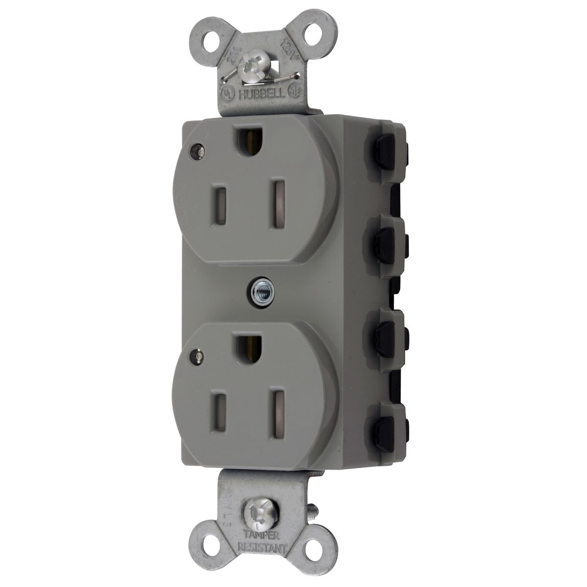 HUBBELL WIRING DEVICE-KELLEMS SNAP5262GYLTRA Straight Receptacle, Led Indicator, 15A 125V, 5-15R, Nylon, Gray