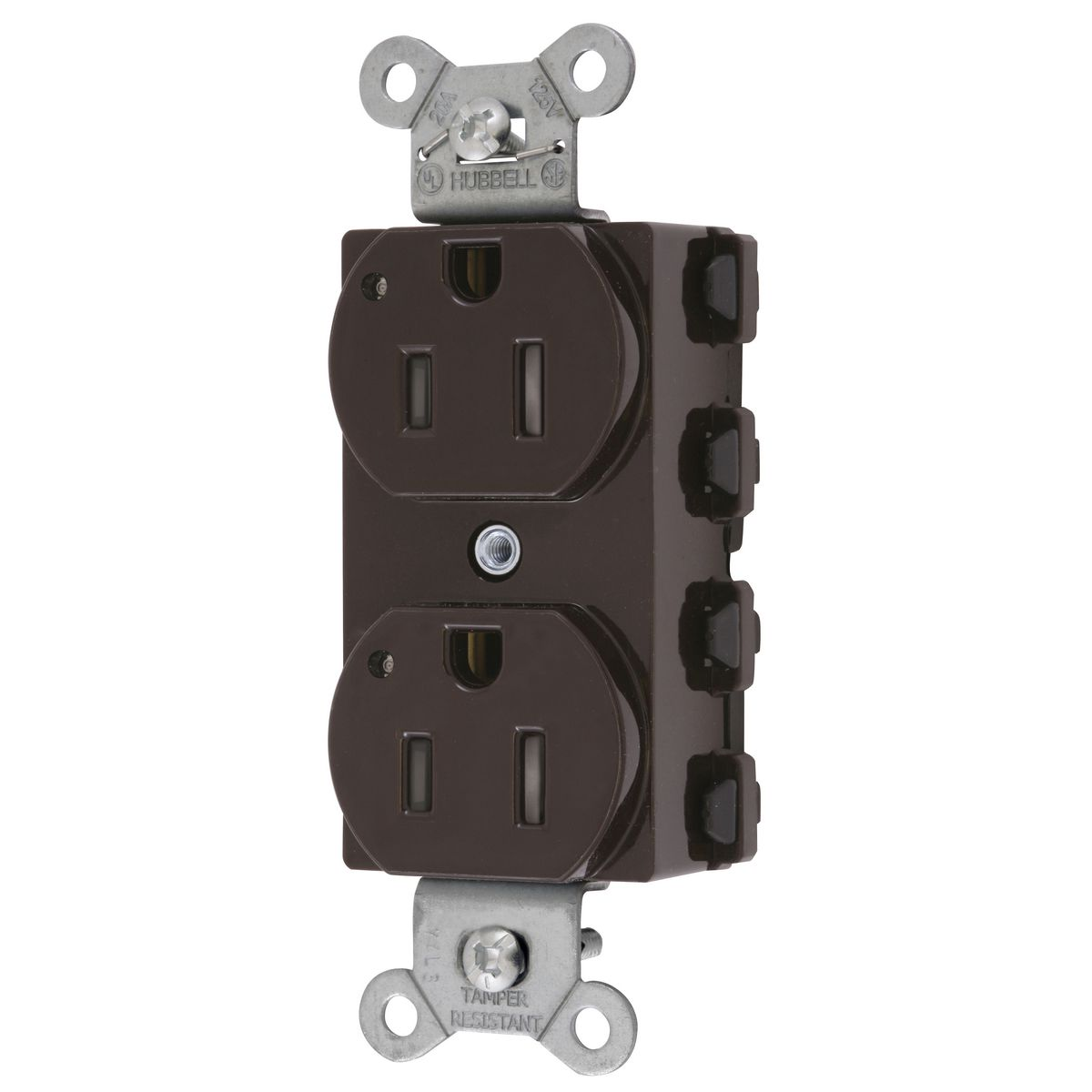 HUBBELL WIRING DEVICE-KELLEMS SNAP5262LTRA Straight Receptacle, Led Indicator, 15A 125V, 5-15R, Nylon, Brown