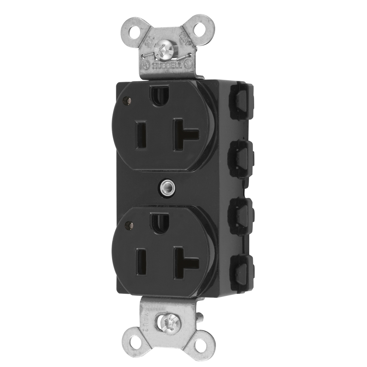 HUBBELL WIRING DEVICE-KELLEMS SNAP5362BKL Straight Receptacle, 20A 125V, 2P - 3W Grounding, 5-20R, Nylon, Black