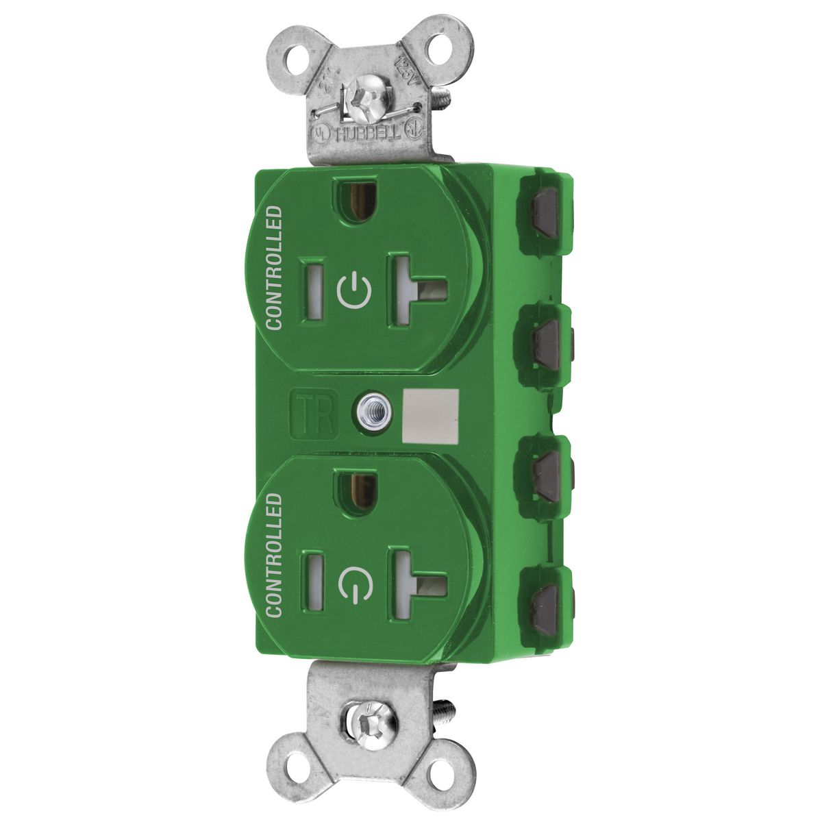 HUBBELL WIRING DEVICE-KELLEMS SNAP5362C2GNTRA Straight Receptacle, 20A 125V, 2-Pole 3-Wire Grounding, 5-20R, Nylon, Green