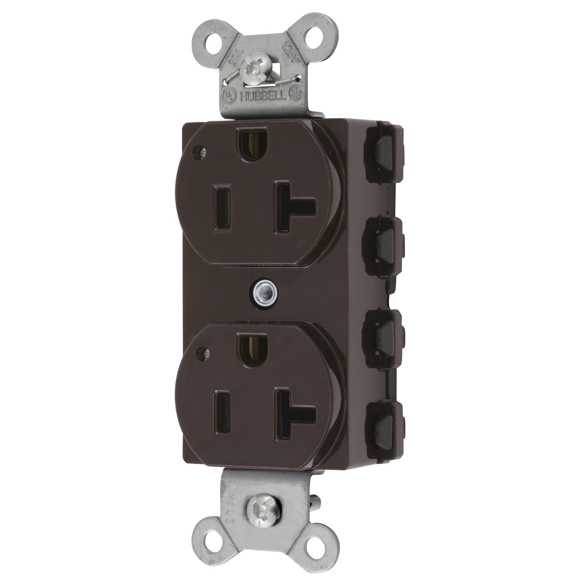 HUBBELL WIRING DEVICE-KELLEMS SNAP5362L Straight Receptacle, 20A 125V, 2P - 3W Grounding, 5-20R, Nylon, Brown