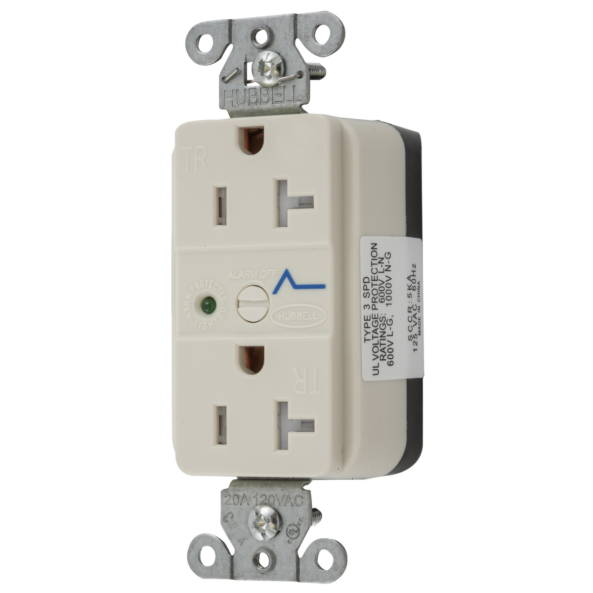 HUBBELL WIRING DEVICE-KELLEMS SNAP5362LAS Straight Receptacle, Led Indicator, 20A 125V, 5-20R, Nylon, Light Almond