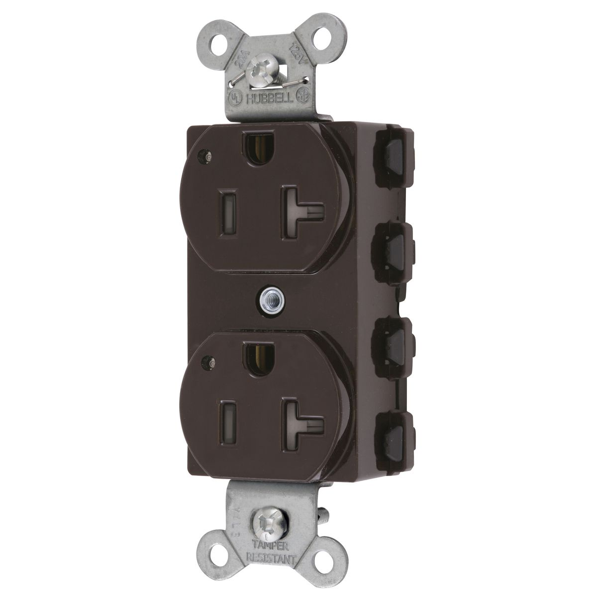 HUBBELL WIRING DEVICE-KELLEMS SNAP5362LTRA Straight Receptacle, Led Indicator, 20A 125V, 5-20R, Nylon, Brown