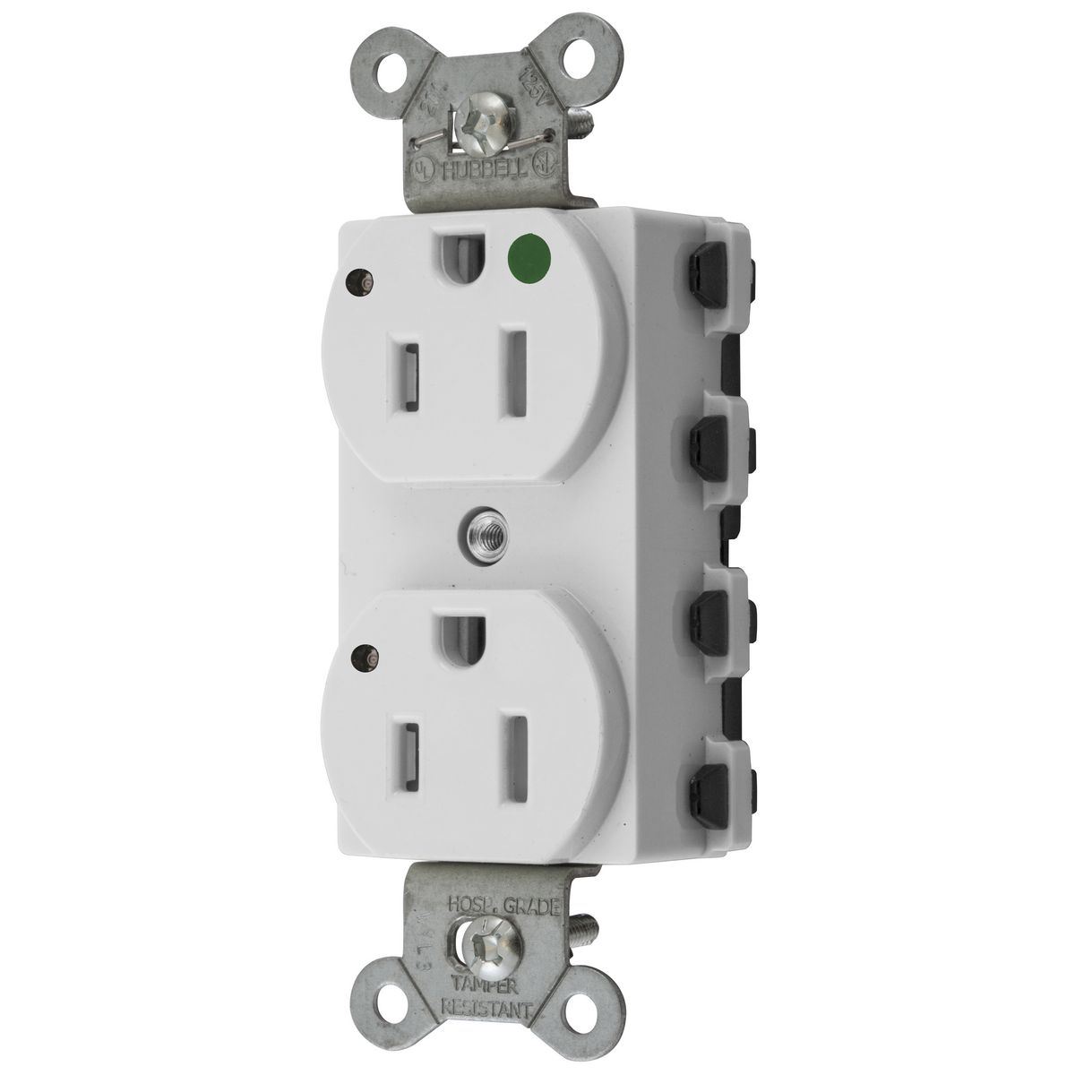 HUBBELL WIRING DEVICE-KELLEMS SNAP8200WLTRA Straight Receptacle, Duplex, Tamper Resistant, 15A 125V, Nylon, White