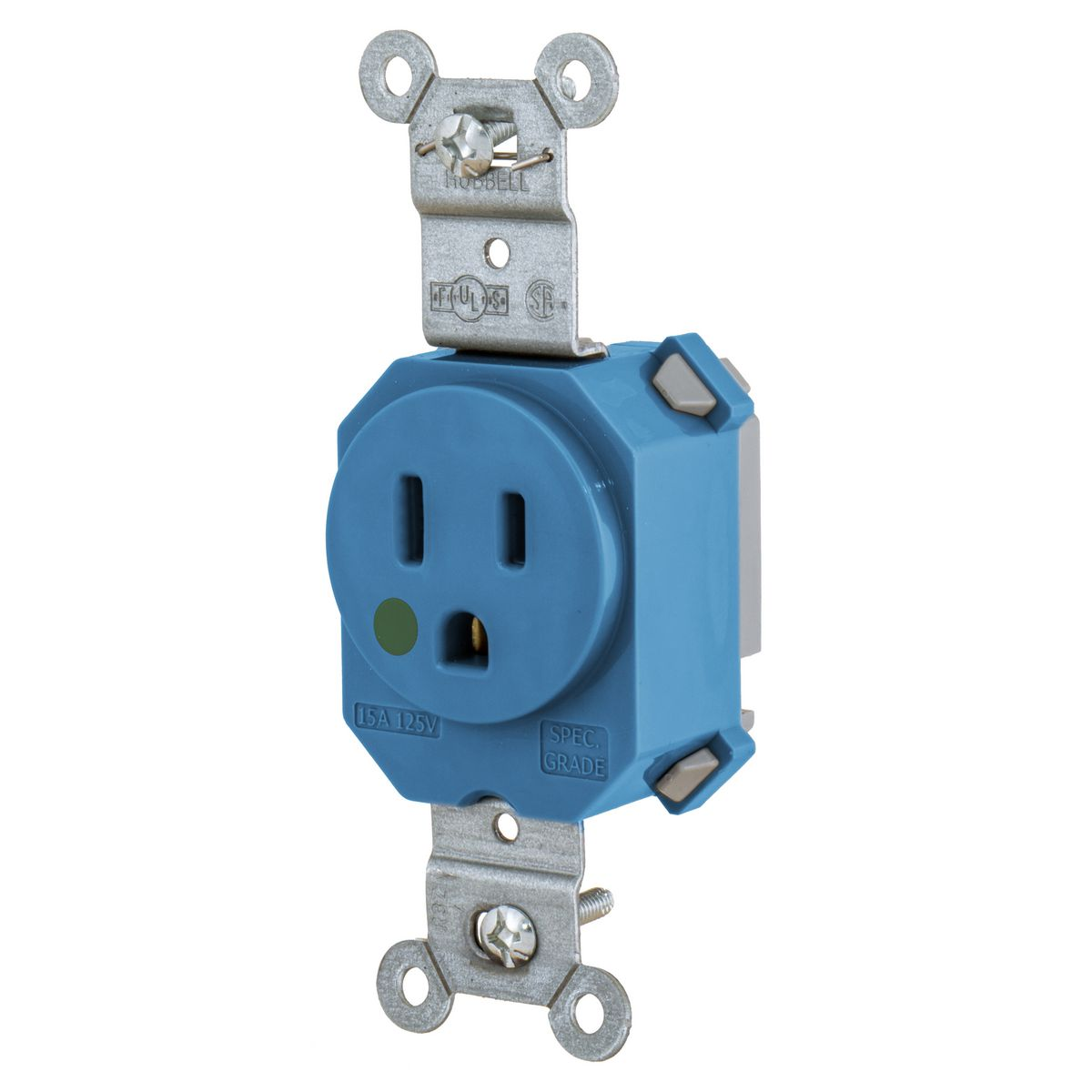 HUBBELL WIRING DEVICE-KELLEMS SNAP8210BL Receptacle, Simplex, 15A, 125V, 2-Pole, 3-Wire Grounding, Nylon, Blue