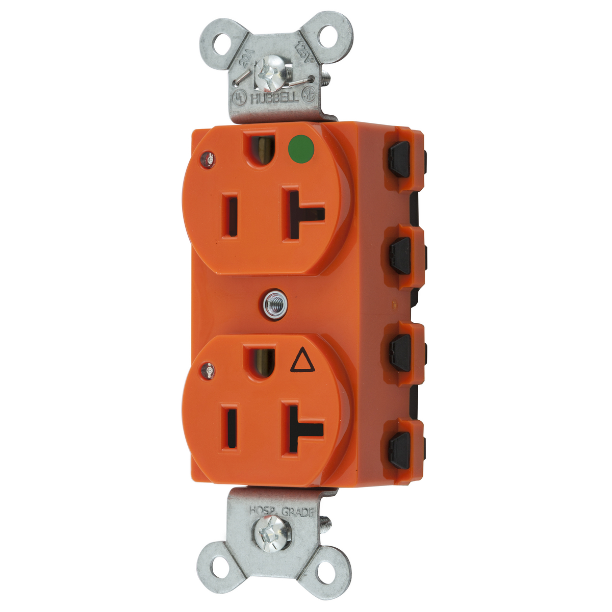 HUBBELL WIRING DEVICE-KELLEMS SNAP8300IGL Straight Receptacle, Duplex, Isolated Ground, 20A 125V, Nylon, Orange