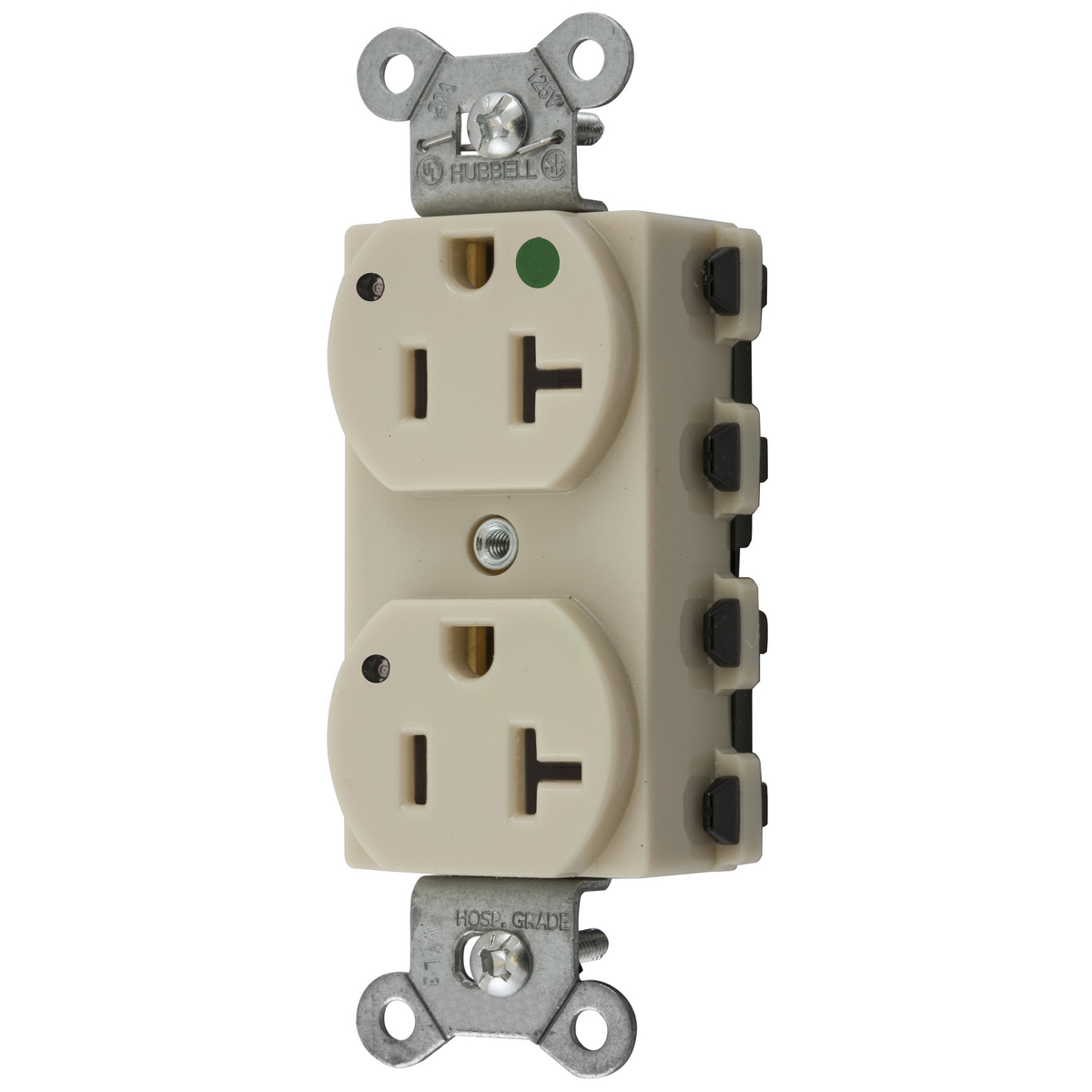 HUBBELL WIRING DEVICE-KELLEMS SNAP8300IL Straight Receptacle, Duplex, 20A 125V, Nylon, Ivory