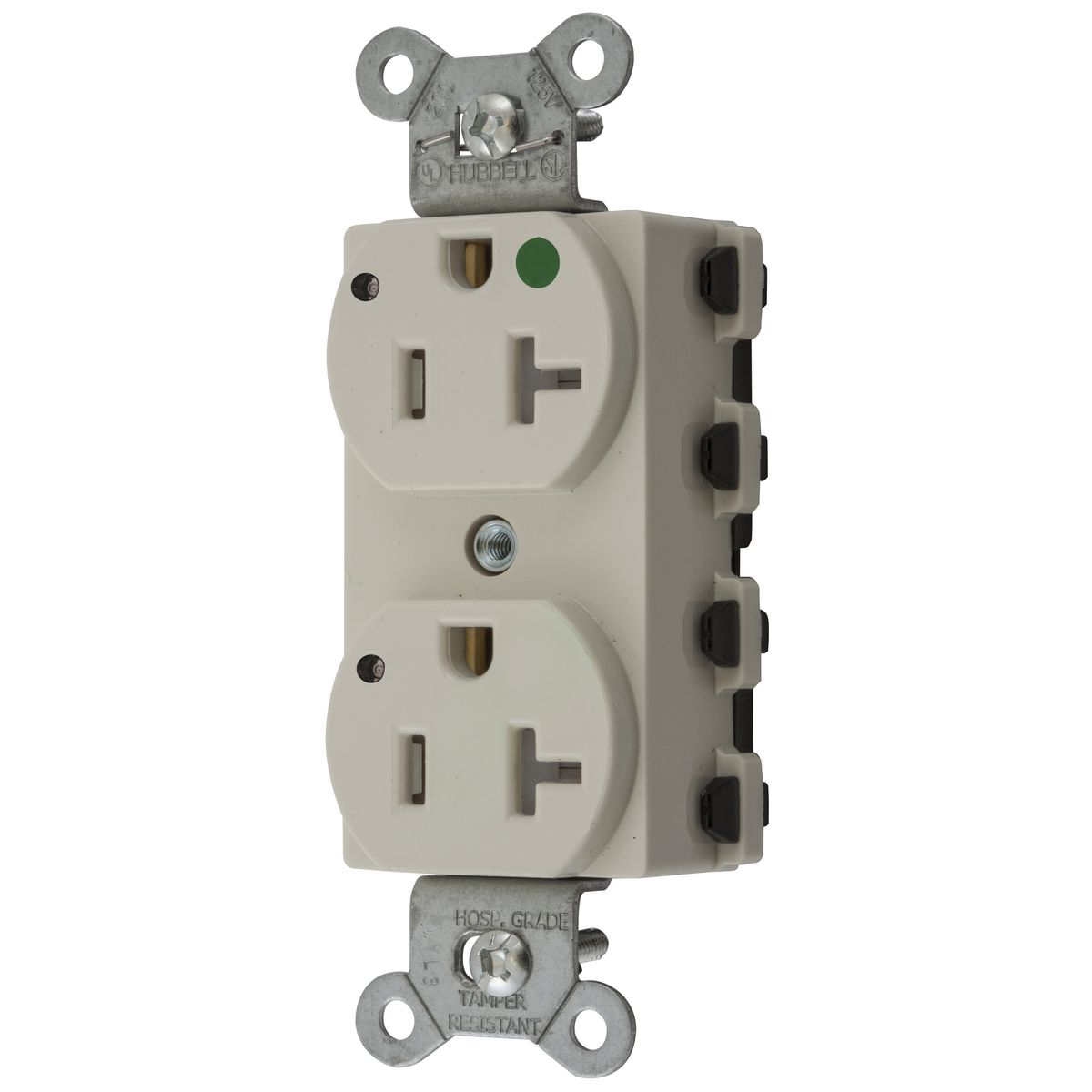 HUBBELL WIRING DEVICE-KELLEMS SNAP8300LALTRA Straight Receptacle, Duplex, Tamper Resistant, 20A 125V, Nylon, Light Almond