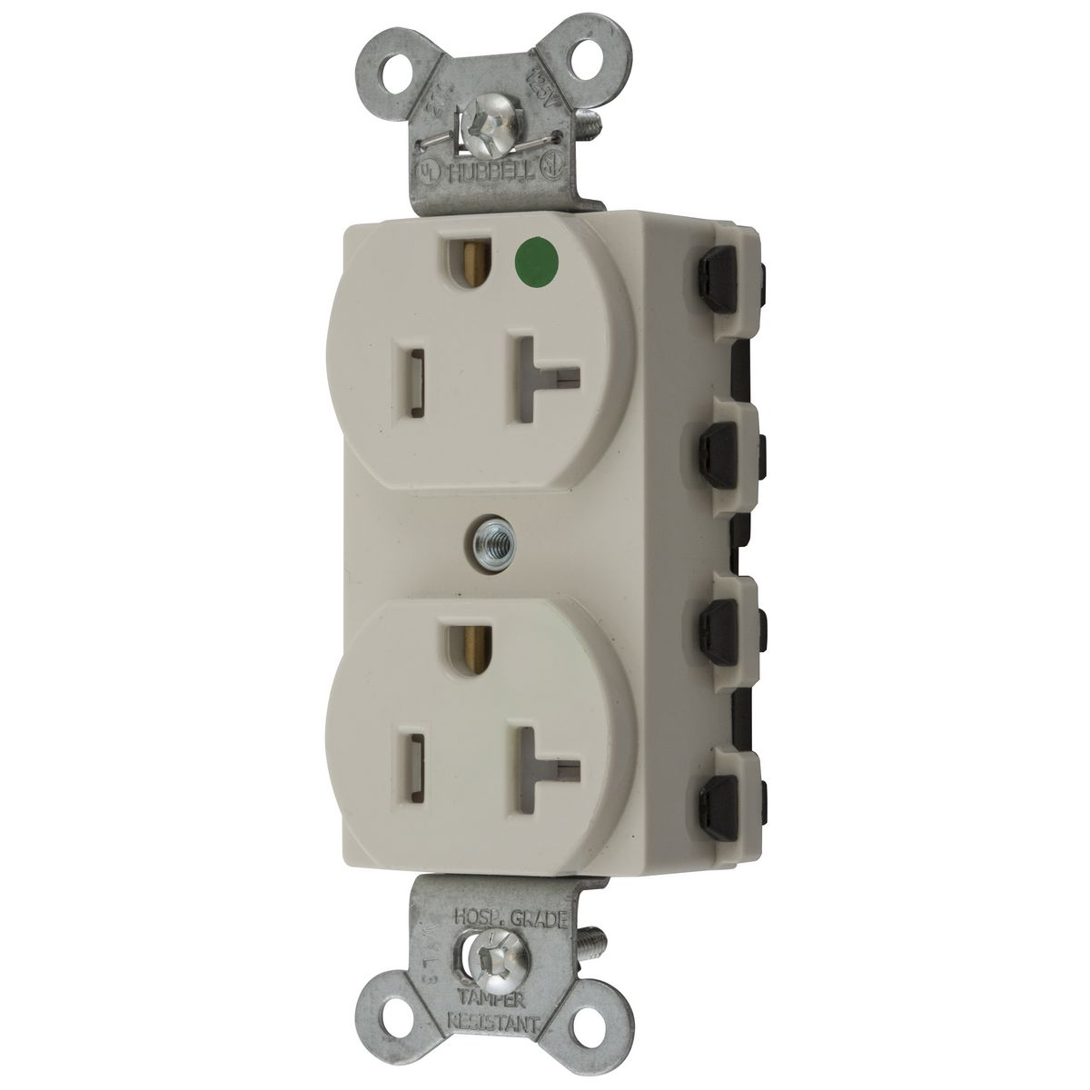 HUBBELL WIRING DEVICE-KELLEMS SNAP8300LATRA Straight Receptacle, Duplex, Tamper Resistant, 20A 125V, Nylon, Light Almond