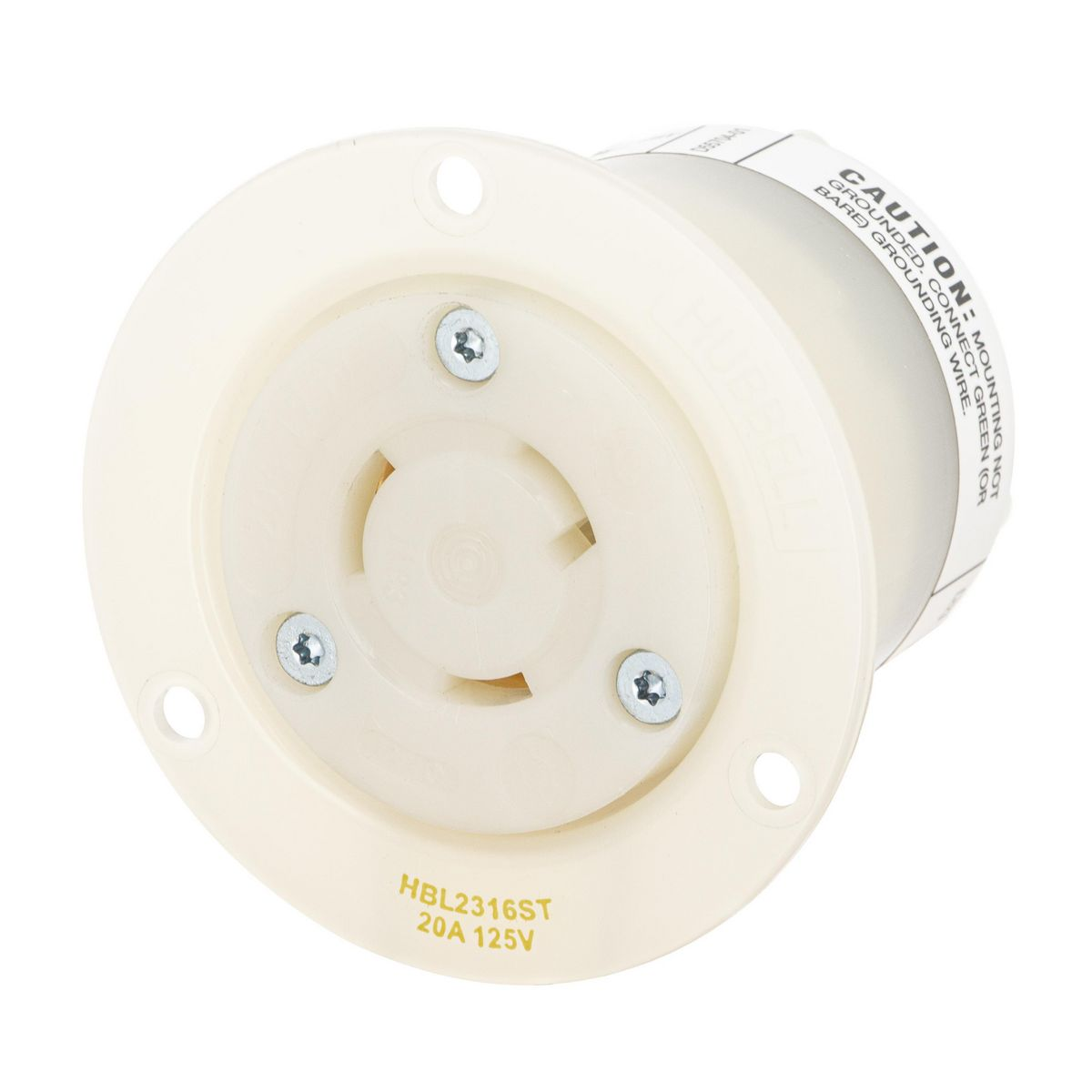 HUBBELL HBL2316ST Locking Receptacle, L5-20R, 20 A, 125V AC, White, 2 Poles, Shrouded