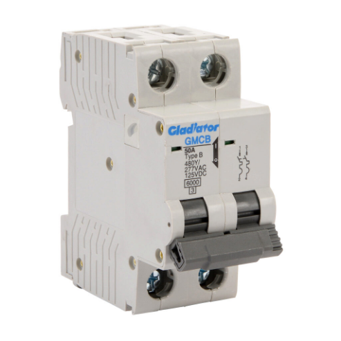 GLADIATOR GMCB-2B-50 Miniature Supplementary Protector, 50A, 480Y/ 277 VAC/ 125 VDC, 2-Pole, B Curve