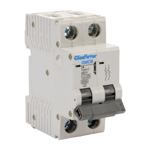 GLADIATOR GMCB-2C-1 Miniature Supplementary Protector, 1A, 480Y/ 277 VAC/ 125 VDC, 2-Pole, C Curve
