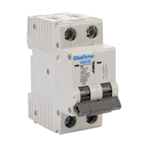 GLADIATOR GMCB-2C-3 Miniature Supplementary Protector, 3A, 480Y/ 277 VAC/ 125 VDC, 2-Pole, C Curve