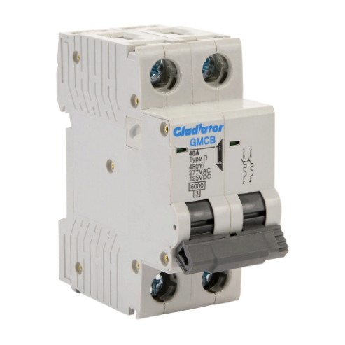 GLADIATOR GMCB-2D-40 Miniature Supplementary Protector, 40A, 480Y/ 277 VAC/ 125 VDC, 2-Pole, D Curve