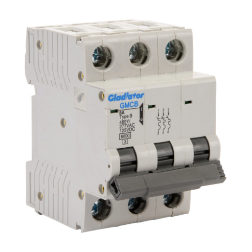 GLADIATOR GMCB-3B-8 Miniature Supplementary Protector, 8A, 480Y/ 277 VAC/ 125 VDC, 3-Pole, B Curve