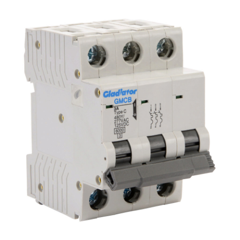 GLADIATOR GMCB-3C-3 Miniature Supplementary Protector, 3A, 480Y/ 277 VAC/ 125 VDC, 3-Pole, C Curve