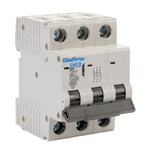 GLADIATOR GMCB-3C-32 Miniature Supplementary Protector, 32A, 480Y/ 277 VAC/ 125 VDC, 3-Pole, C Curve