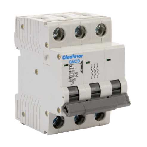 GLADIATOR GMCB-3D-8 Miniature Supplementary Protector, 8A, 480Y/ 277 VAC/ 125 VDC, 3-Pole, D Curve